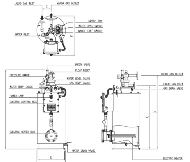 Cấu tạo máy hoá hơi LPG bằng điện.